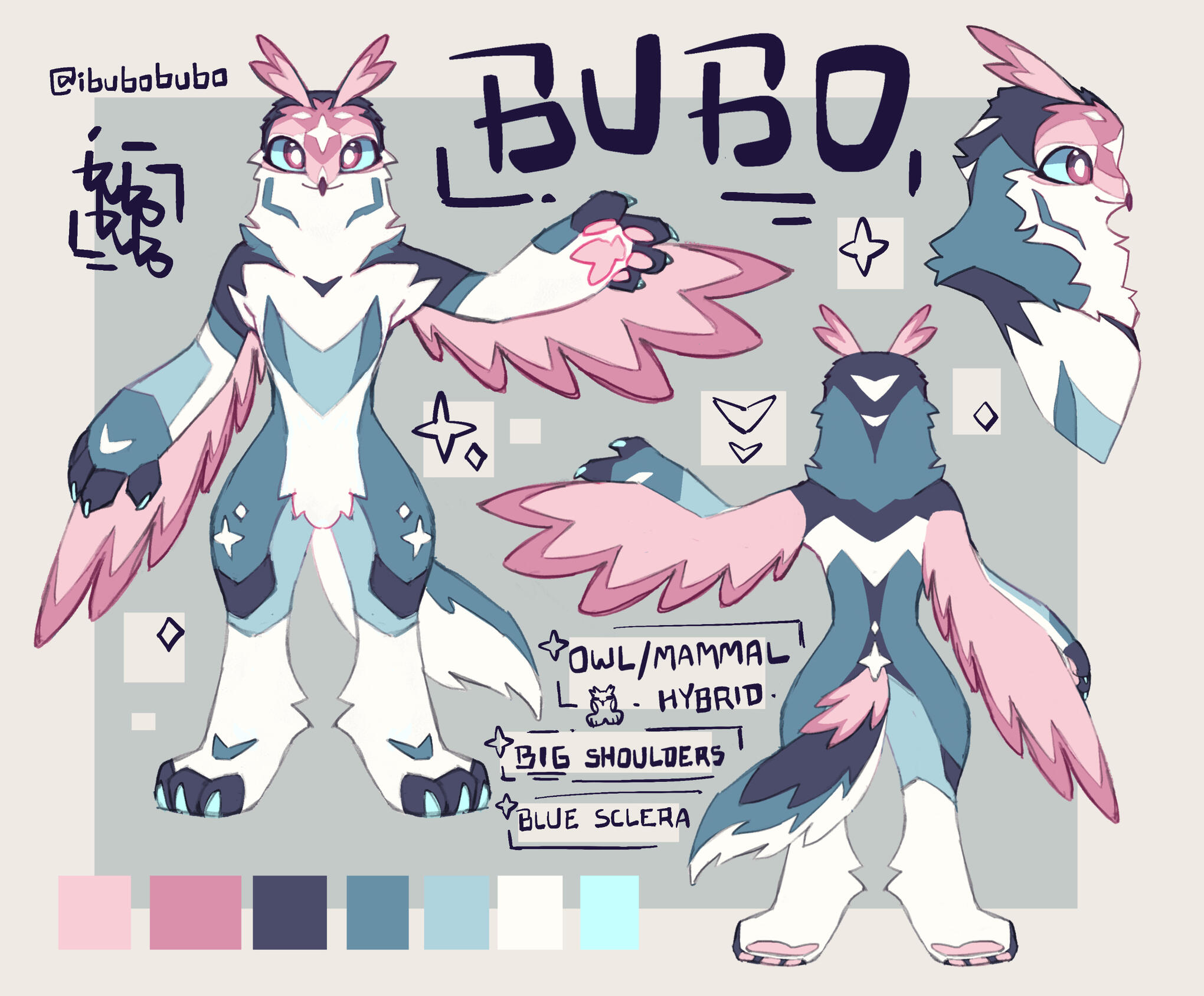 hi! I'm bubo and I've been drawing digitally since I was 12. I switched to making furry art, designing t-shirts and making fursuits in 2024 and I'm having a lot of fun!!